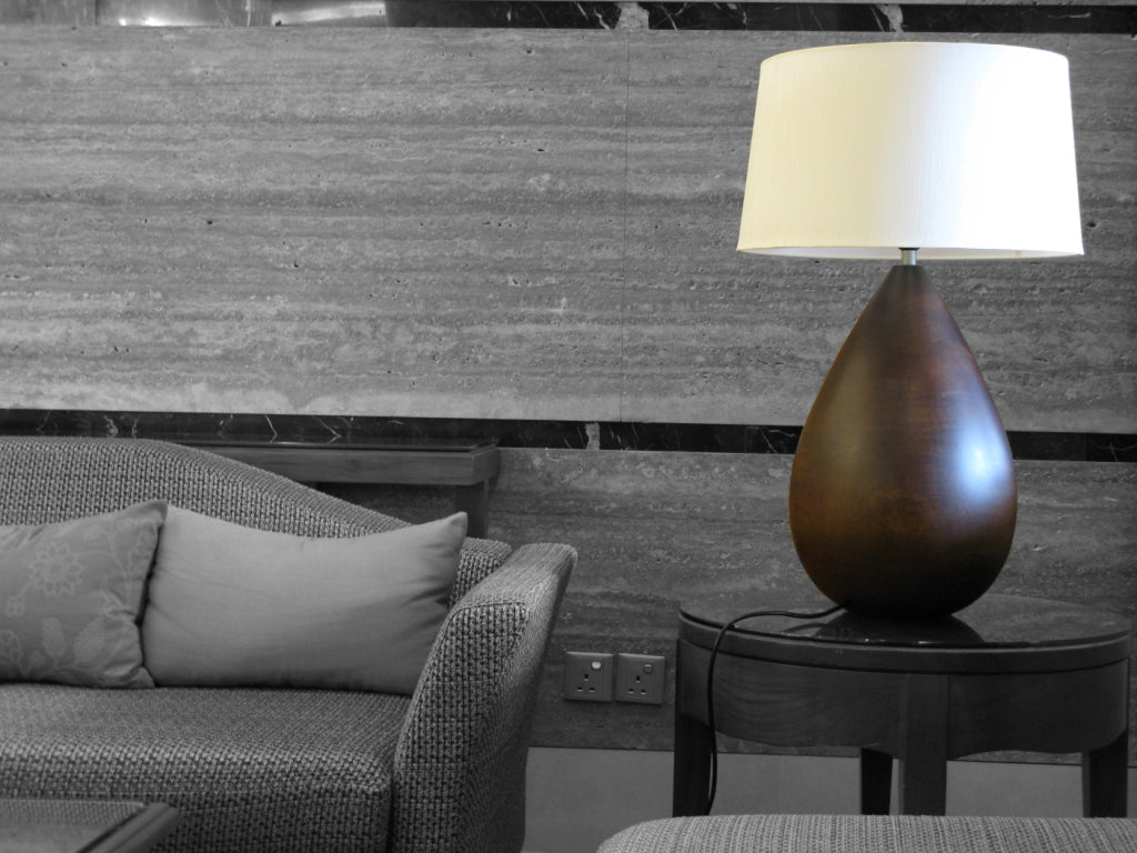 Carved from rich solid mango wood, each Beltz piece is a statement of form and light. Teardrops, hourglasses, and sleek bullet silhouettes transform natural grain into living sculpture. An oversized shade crowns the design, while a dimmable touch sensor lets you set the perfect mood, soft glow to bold radiance, with a single tap.