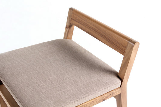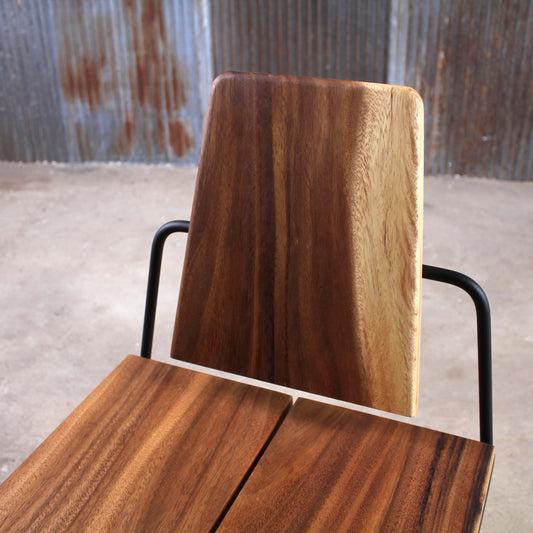 Hand-crafted from solid acacia, each chair is shaped to showcase the wood’s striking contrast of dark and light tones. The sturdy construction offers lasting support, while subtle curves invite comfort.